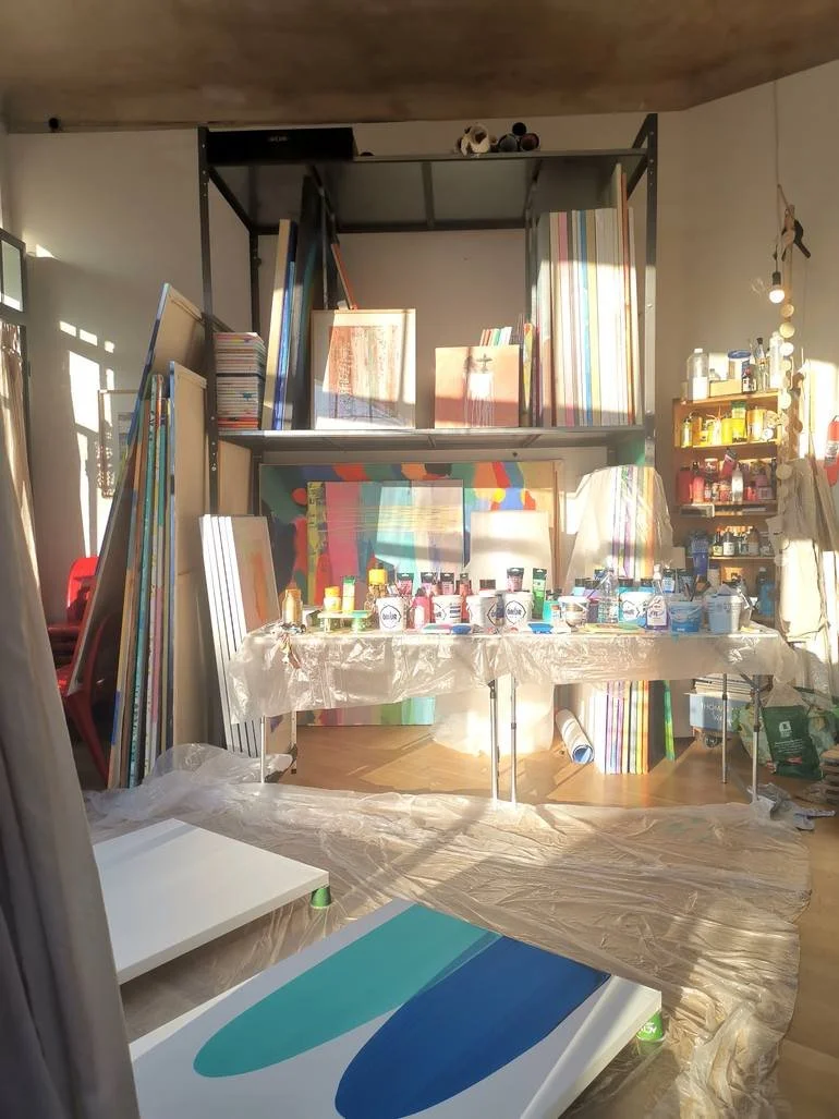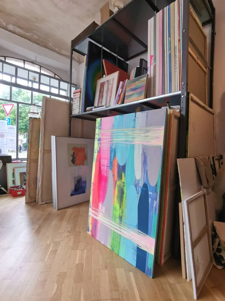 A meditative attitude consistently accompanies this process. Elements of Zen practiceare an integral part of the working environment. They support a state of focused presence, structuring the rhythm of work without directing it, and allow colour and light to be attentively accompanied rather than controlled.